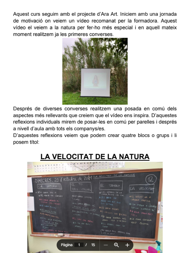 • Participació i diàleg comunitari: el projecte no només impacta dins l’aula, sinó que també busca generar consciència i diàleg en la comunitat local. Es retornen les reflexions i creacions dels alumnes a l’entorn proper.