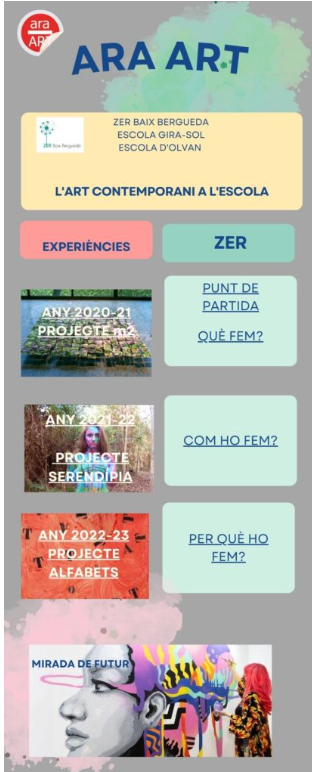 El projecte està vinculat al programa d’innovació araArt, promogut per la Generalitat de Catalunya amb l’objectiu de millorar l’equitat del sistema educatiu mitjançant la col·laboració entre escoles i entitats o centres artístics. Metodològicament, es realitza una jornada de motivació que permet la generació de l’aprenentatge durant tot el curs, seguint diverses línies de desenvolupament que es reflecteixen en el mapa conceptual de cada classe o comunitat.